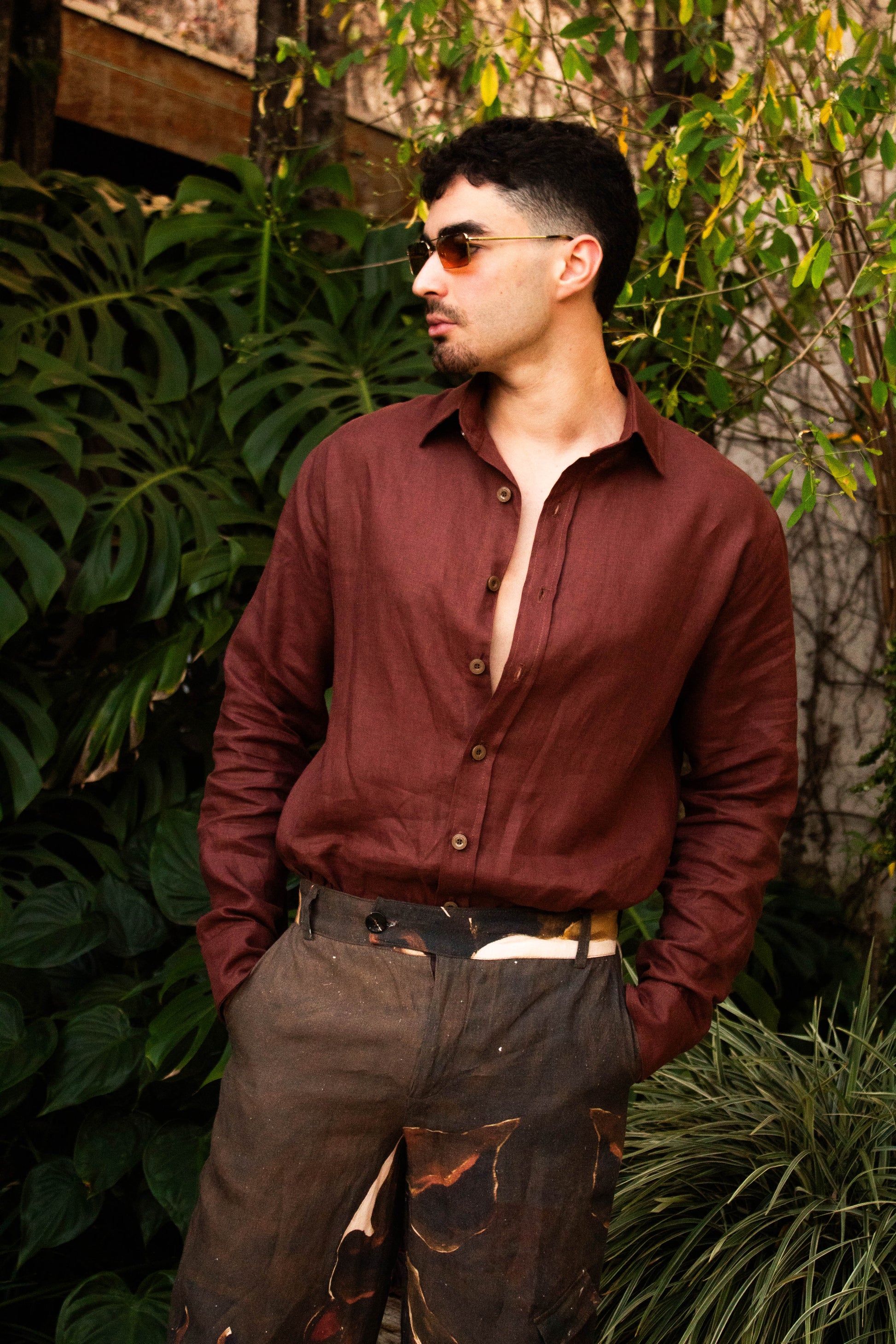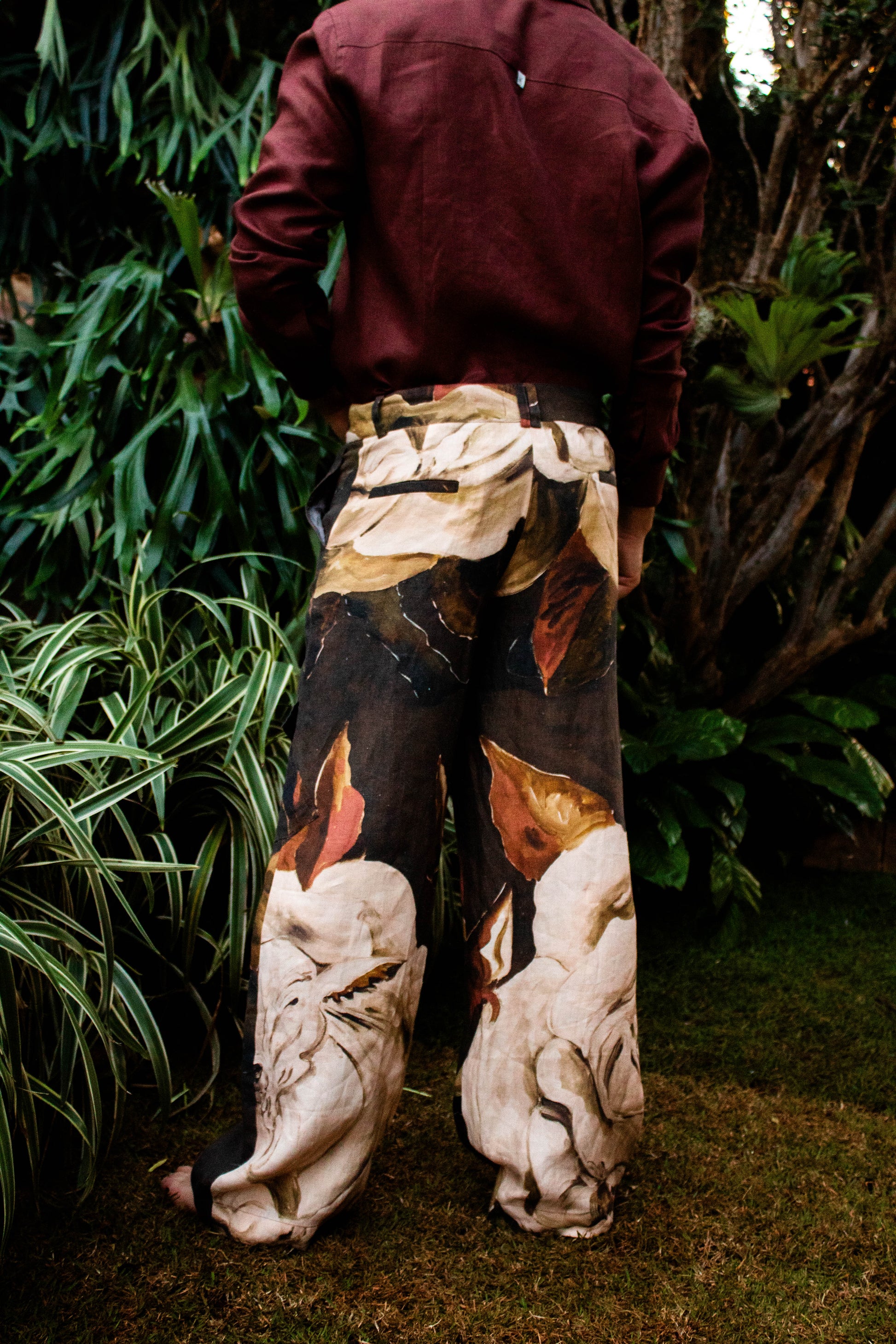 Calça Wide Leg confeccionada em linho puro com caimento amplo nas pernas e ajustada no cós, oferece modernidade e conforto e um caimento impecável, sofisticada com um toque artístico e exclusivo, esta peça traz uma história única para o seu guarda-roupa.