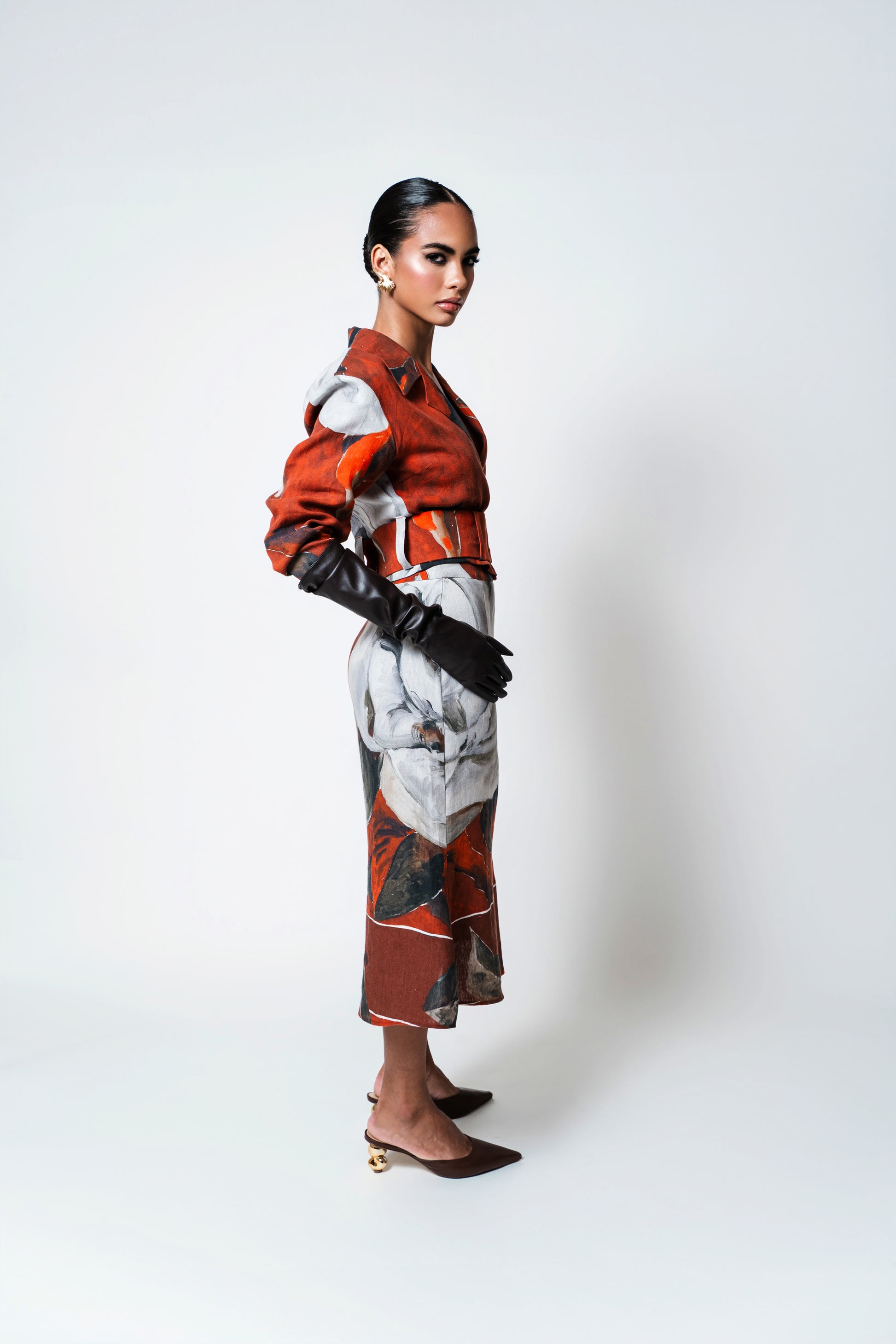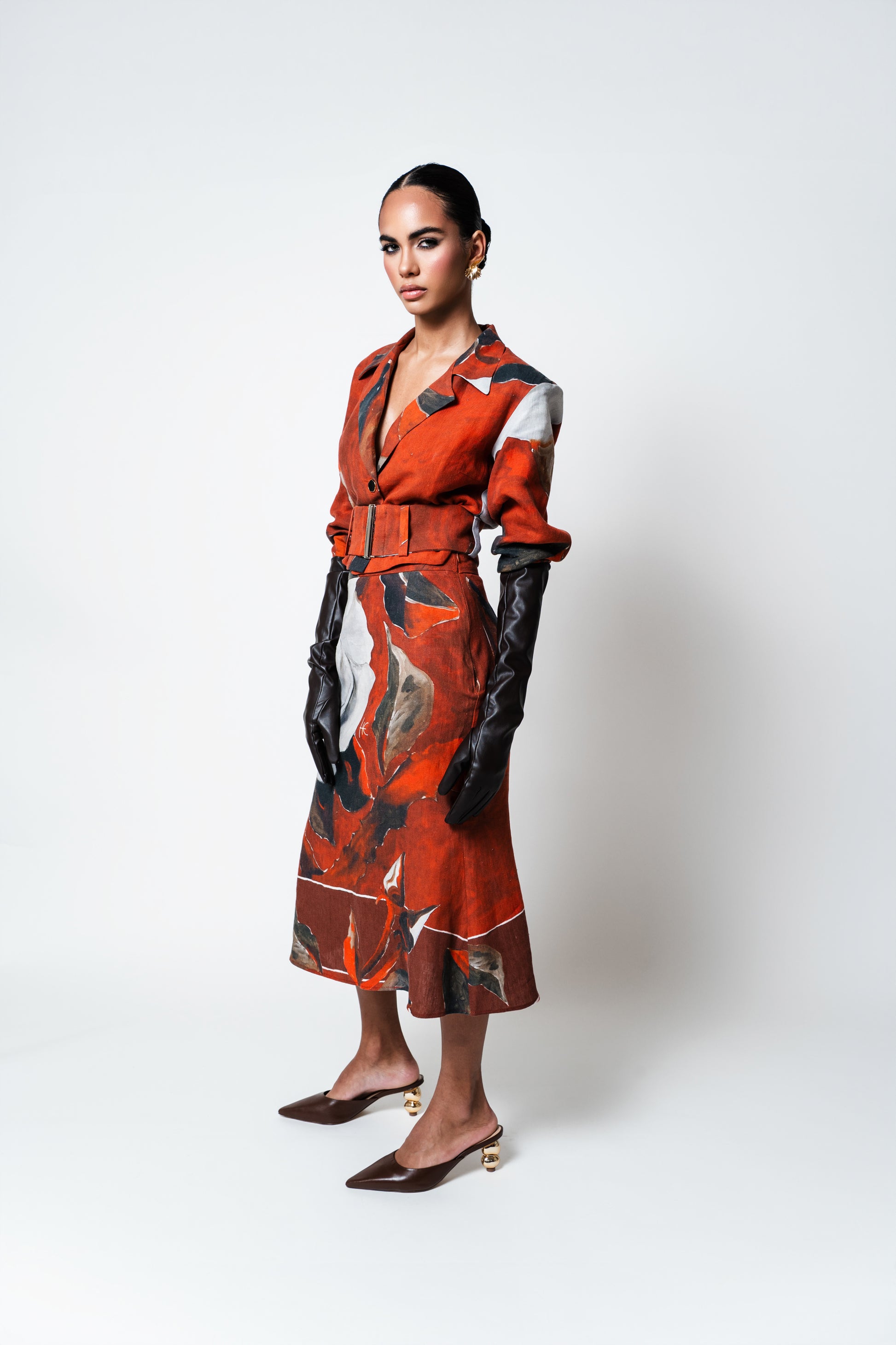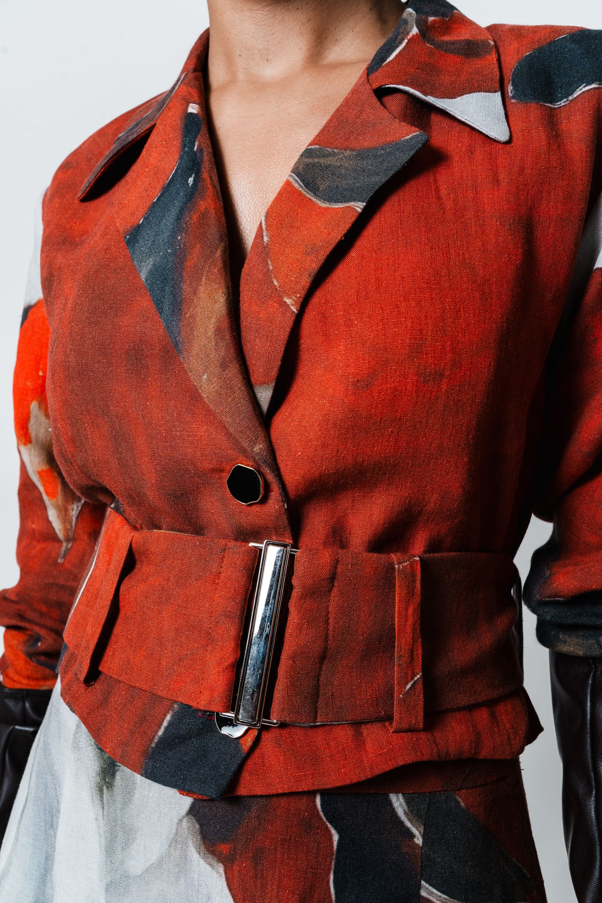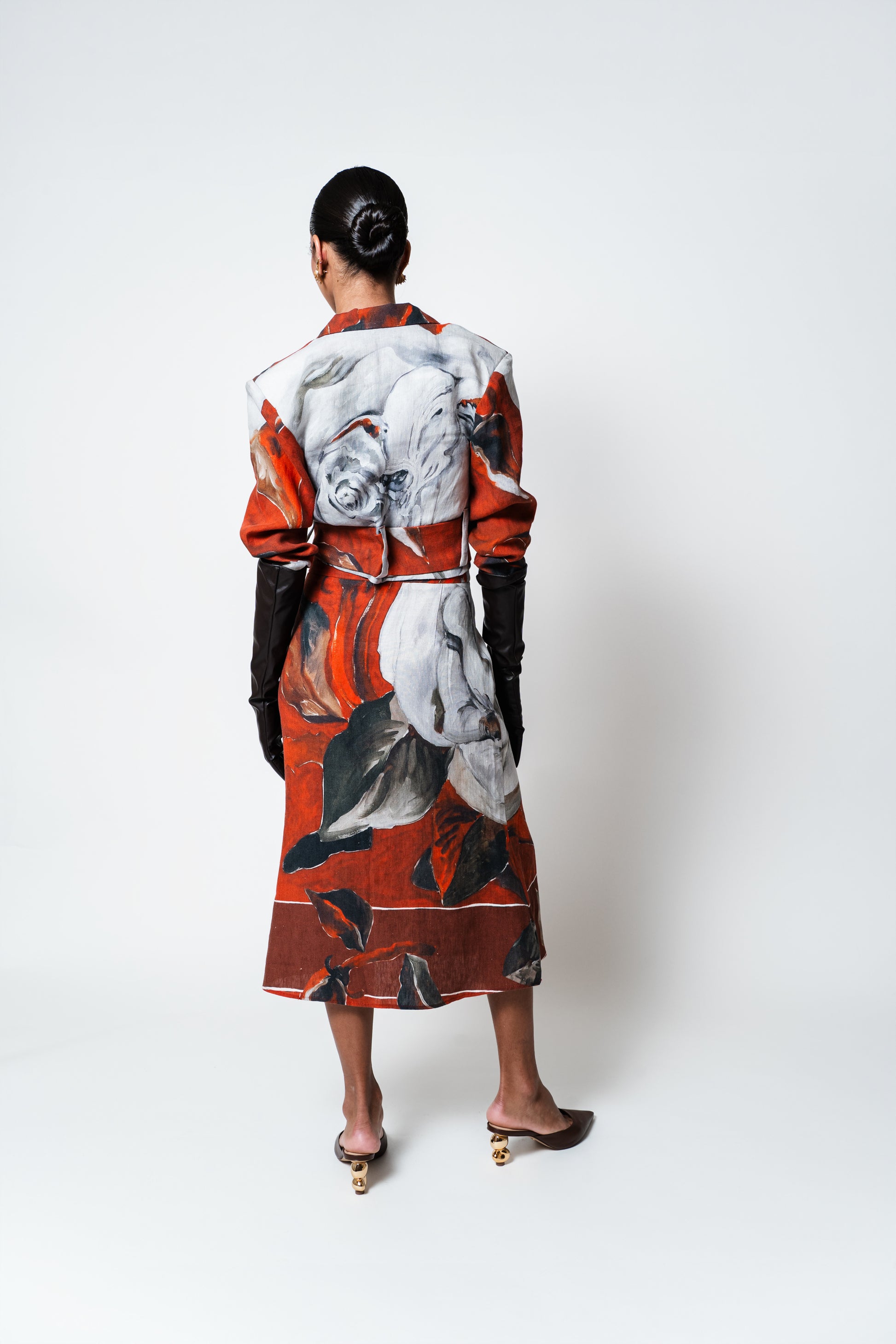 Perfeito para quem deseja um look sofisticado com um toque artístico e exclusivo, esta peça traz uma história única para o seu guarda-roupa. A jaqueta com gola de blazer transmite uma elegância atemporal, enquanto a saia midi confere leveza e movimento, proporcionando um visual feminino e cheio de personalidade.