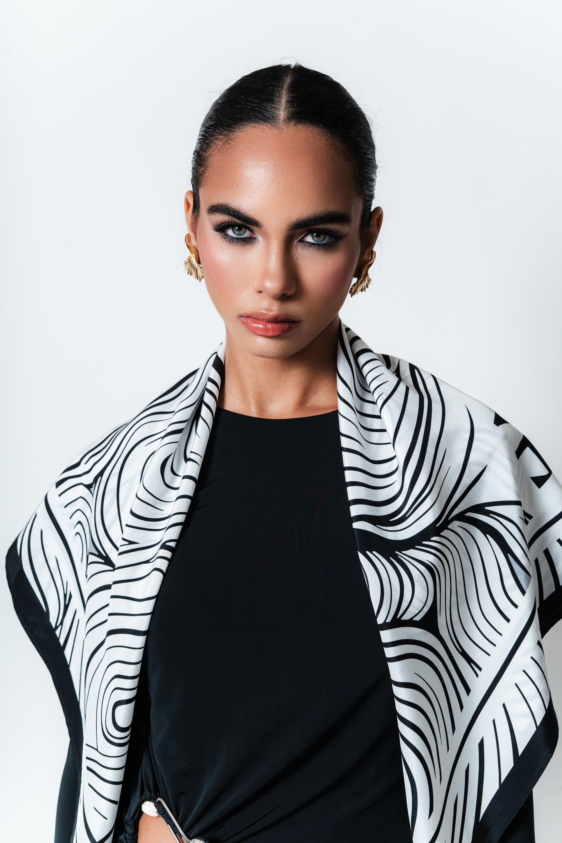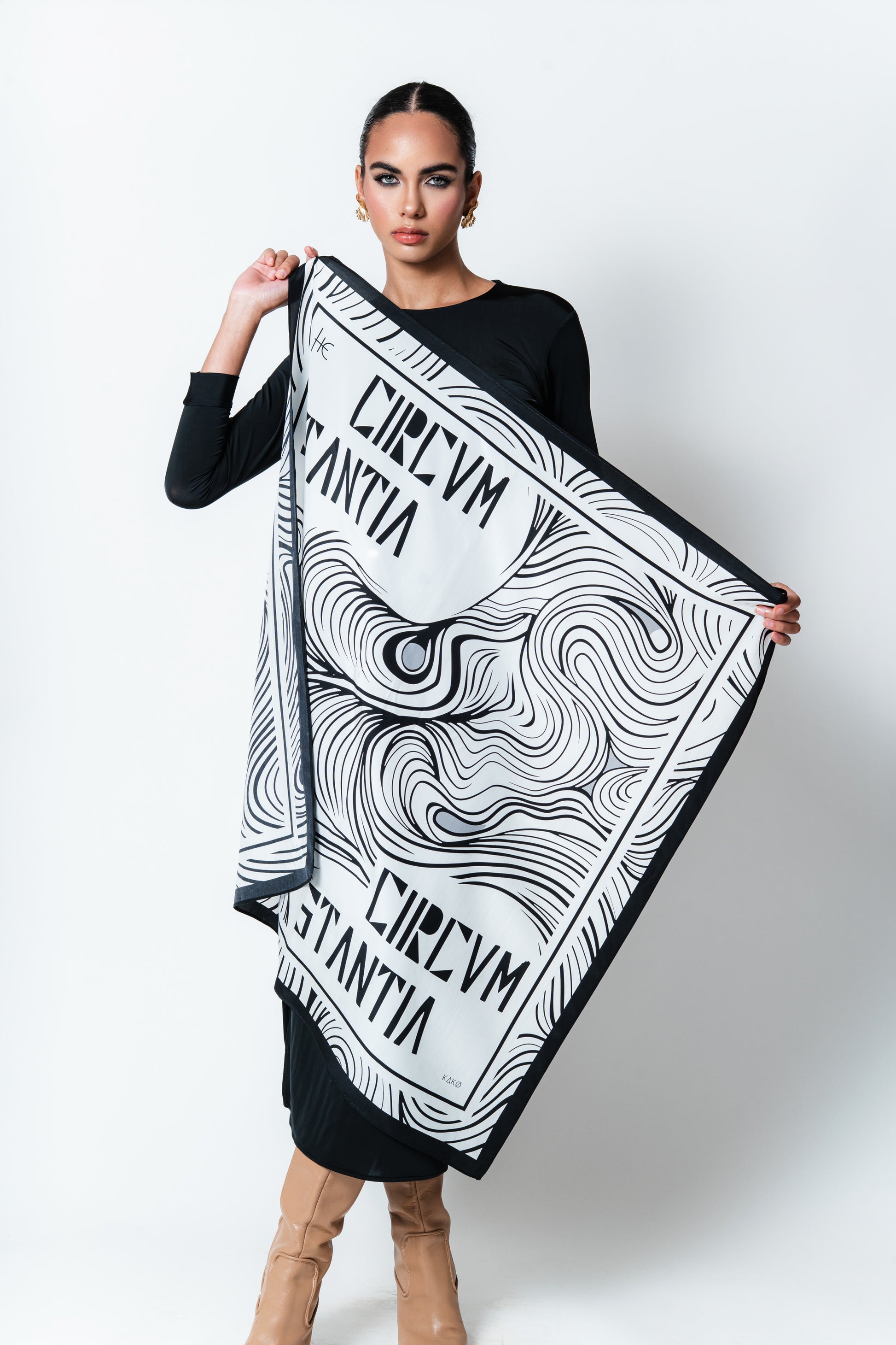 Lenços carré 90x90 feito em seda pura com estampa exclusiva da obra Circunstantia pintada nos anos 70 pelo artista sul-matogrossense Humberto Espíndola, considerado o mestre da arte da bovino cultura, um retrato aéreo das linhas orgânicas do Pantanal visto de cima com nuances psicodélicas. O formato carré - quadrado possibilita diversos estilos de amarrações, seja na cintura, sob os ombros ou enrolado no pescoço, adornando peças básicas como camisetas, camisas, blazers e vestidos.
