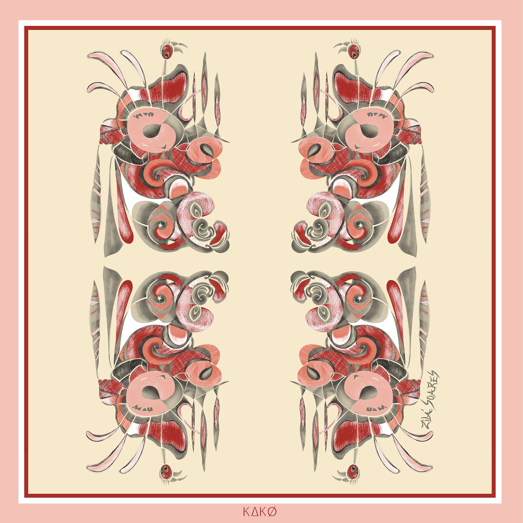 Lenço seda pura tamanho 45x45cm ilustrado com a obra Olhos da artista sul-matogrossense Zilá Soares.