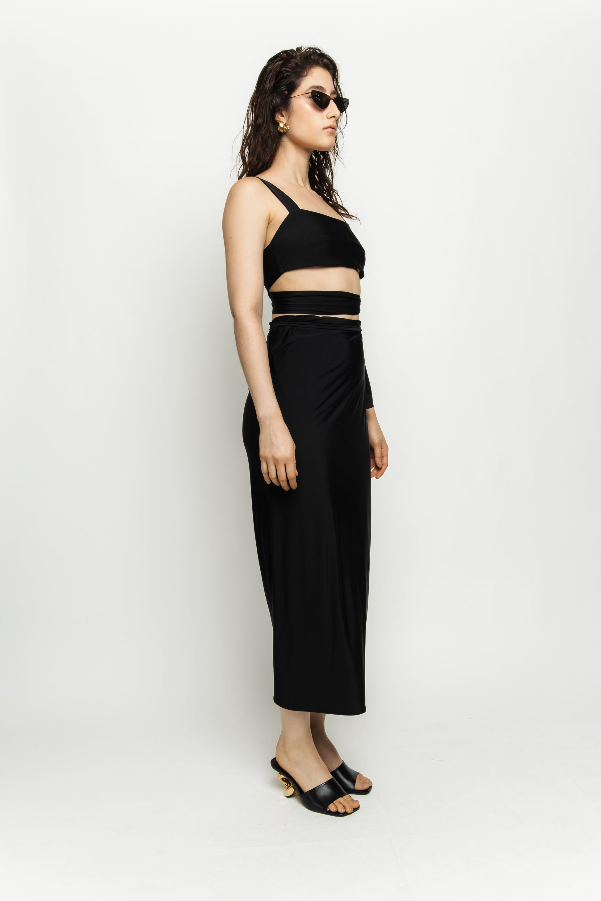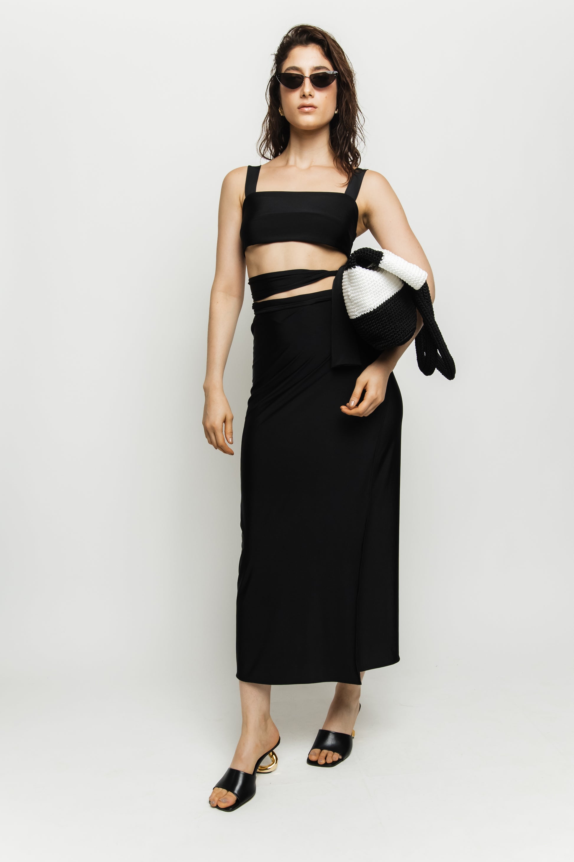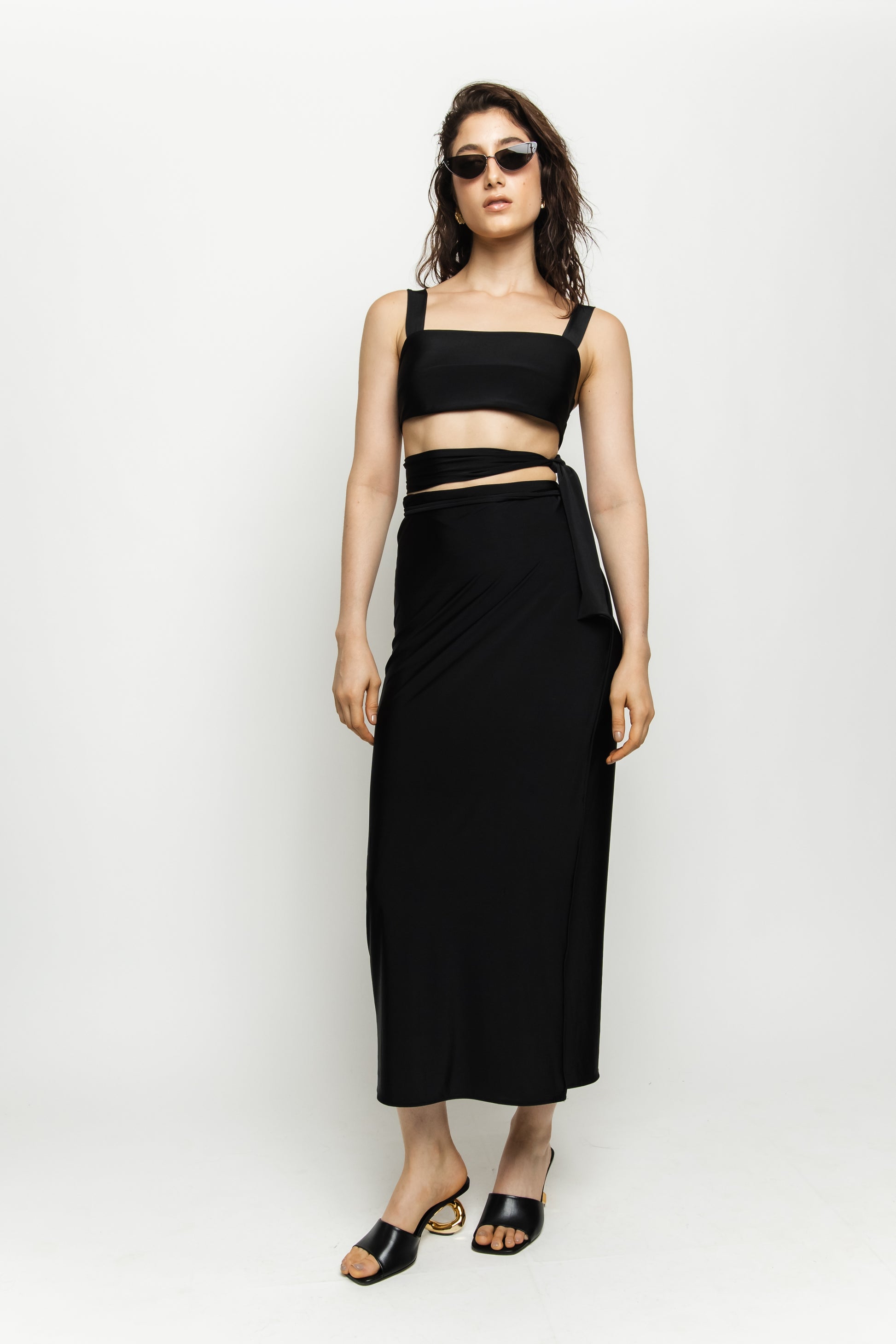 Saia pareô feita em poliamida com elastano, versátil comk design pareô, transpassa no corpo possibilitando diferentes maneiras de amarração, transpasses e franzidos, modo tradicional transpassada com amarração na cintura.