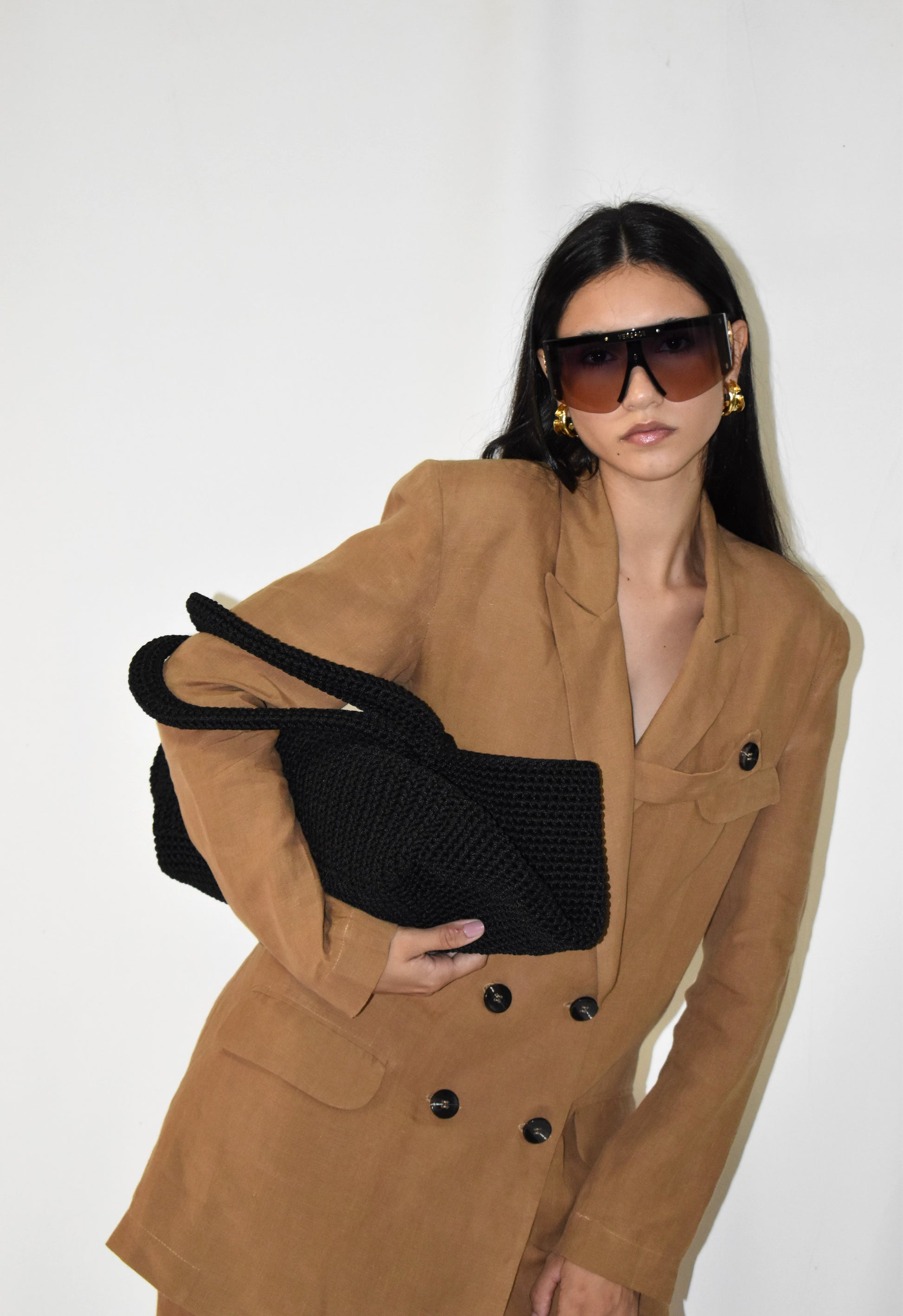 O handmade instaurado em nossa coleção Spring Summer 2024, Arts & Crafts - chegou entregando a modernidade, o feito-à-mão, design contemporâneo e variados adjetivos que compõe a nossa Tote Bag. Feita em crochê com fios náuticos, com acabamento super reforçado, é perfeita para carregar bastante peso, passeando do trabalho à momentos de resort.