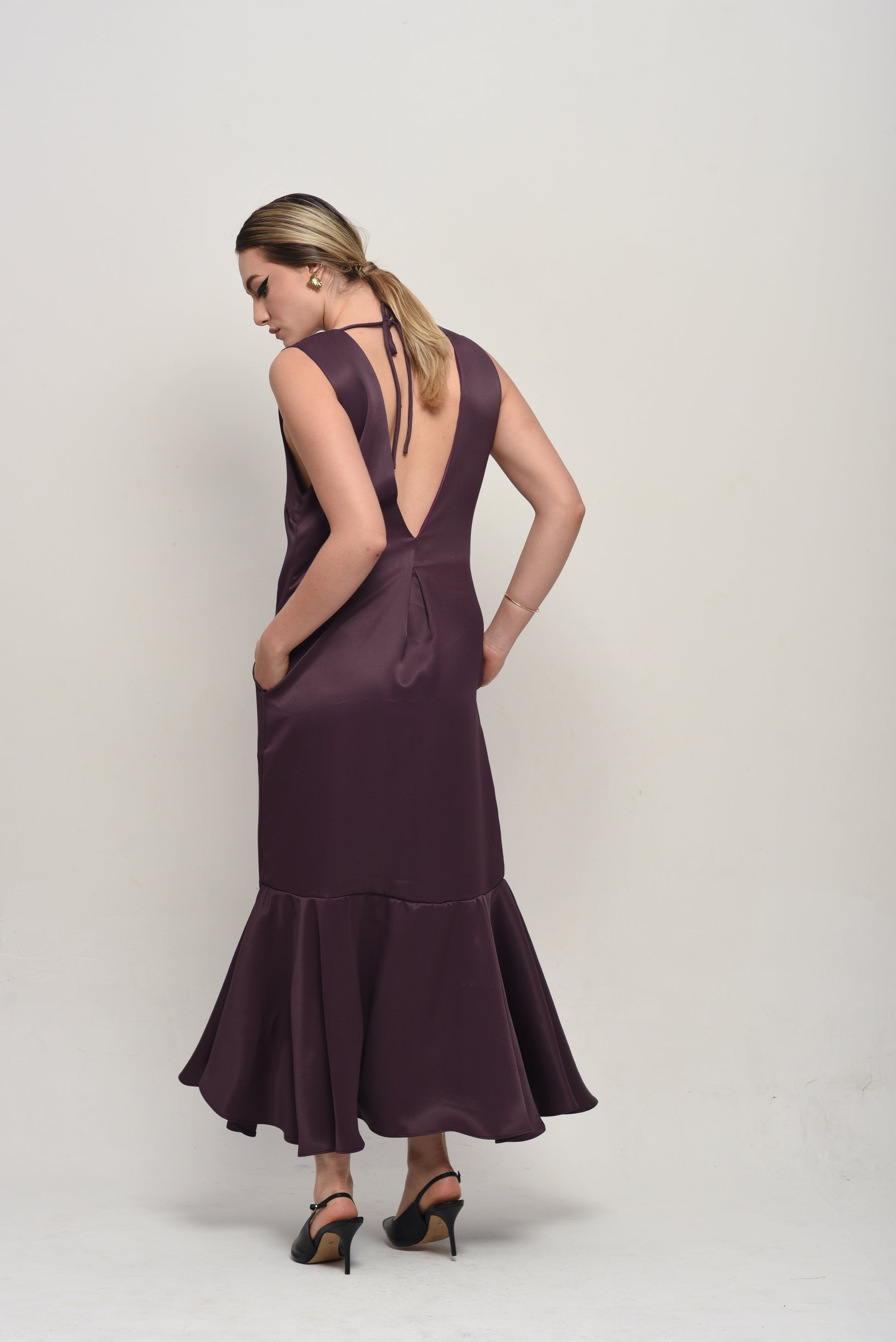 Vestido feito em viscose, shape reto com recorte na barra enviezado criando um leve babado, com design minimalista conferem sofisticação e atemporalidade.